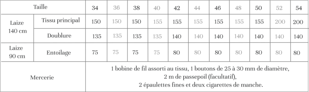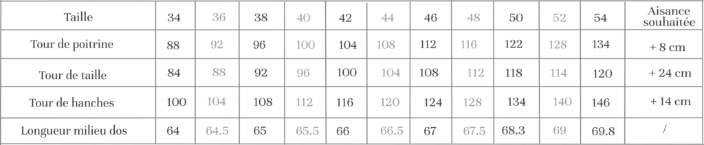 – Gradé du 34 au 54, la présence de calques vous permet de sélectionner la ou les tailles qui vous intéressent.